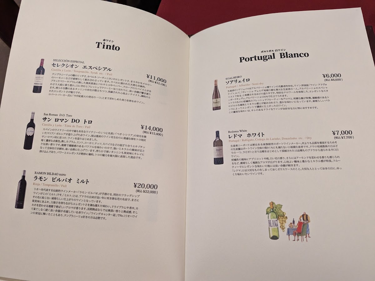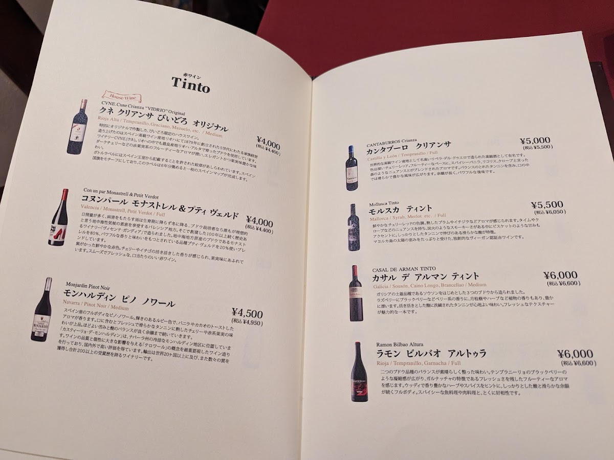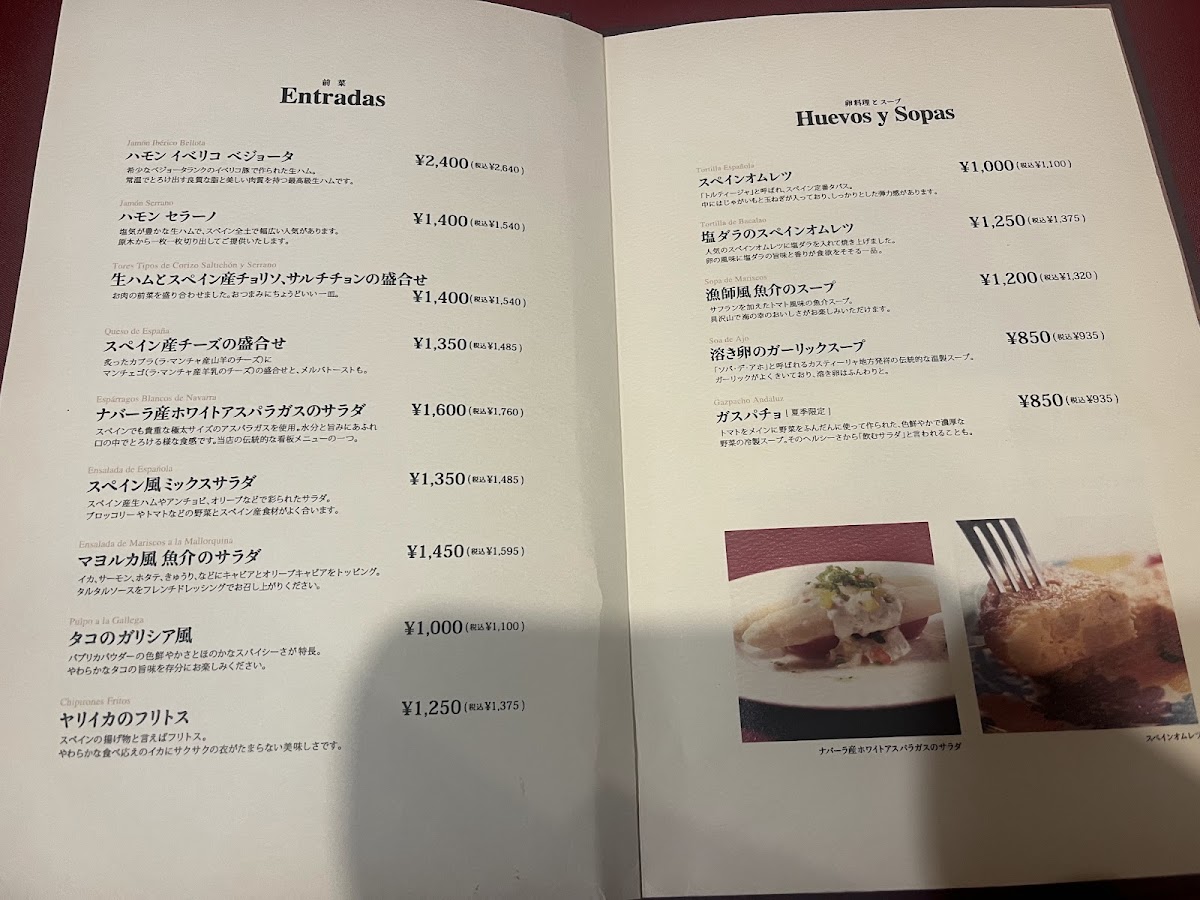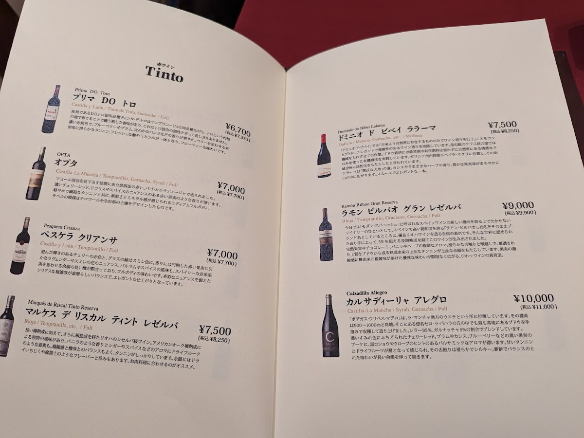 Vidrio Ginza Store offers a delightful and sophisticated menu that beautifully blends Spanish flavors with a contemporary touch. Starting with the appetizer section, the Jamon Iberico Bellota offers a savory, melt-in-your-mouth experience, showcasing high-quality Iberian ham. The main dishes continue to impress, including the Grilled Iberico Pork with Truffle Sauce, which is a decadent combination of tender pork paired with the rich aroma of truffle. For seafood enthusiasts, the Grilled Scallops with Lemon Butter Sauce stands out as a fresh, perfectly cooked option. The Paella Valenciana, a classic Spanish dish, offers a flavorful and generous portion that is both hearty and satisfying. As for desserts, the Churros with Chocolate Dip provide a sweet, crispy finish to the meal. The prices, while on the higher end, reflect the premium ingredients and expert preparation that make Vidrio Ginza a standout dining destination in Tokyo's Ginza district.
